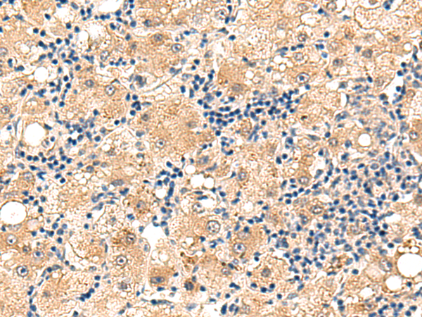 The image is immunohistochemistry of paraffin-embedded Human liver cancer tissue using P03097(C19orf57 Antibody) at dilution 1/60. (Original magnification: ×200) |