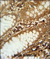 C1orf51 antibody (N-term) (Cat. #P30761) immunohistochemistry analysis in formalin fixed and paraffin embedded human large intestine followed by peroxidase conjugation of the secondary antibody and DAB staining. This data demonstrates the use of the C1orf51 antibody (N-term) for immunohistochemistry. Clinical relevance has not been evaluated. |