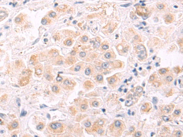 The image is immunohistochemistry of paraffin-embedded Human liver cancer tissue using P13813(C1QBP Antibody) at dilution 1/50. (Original magnification: ×200) |