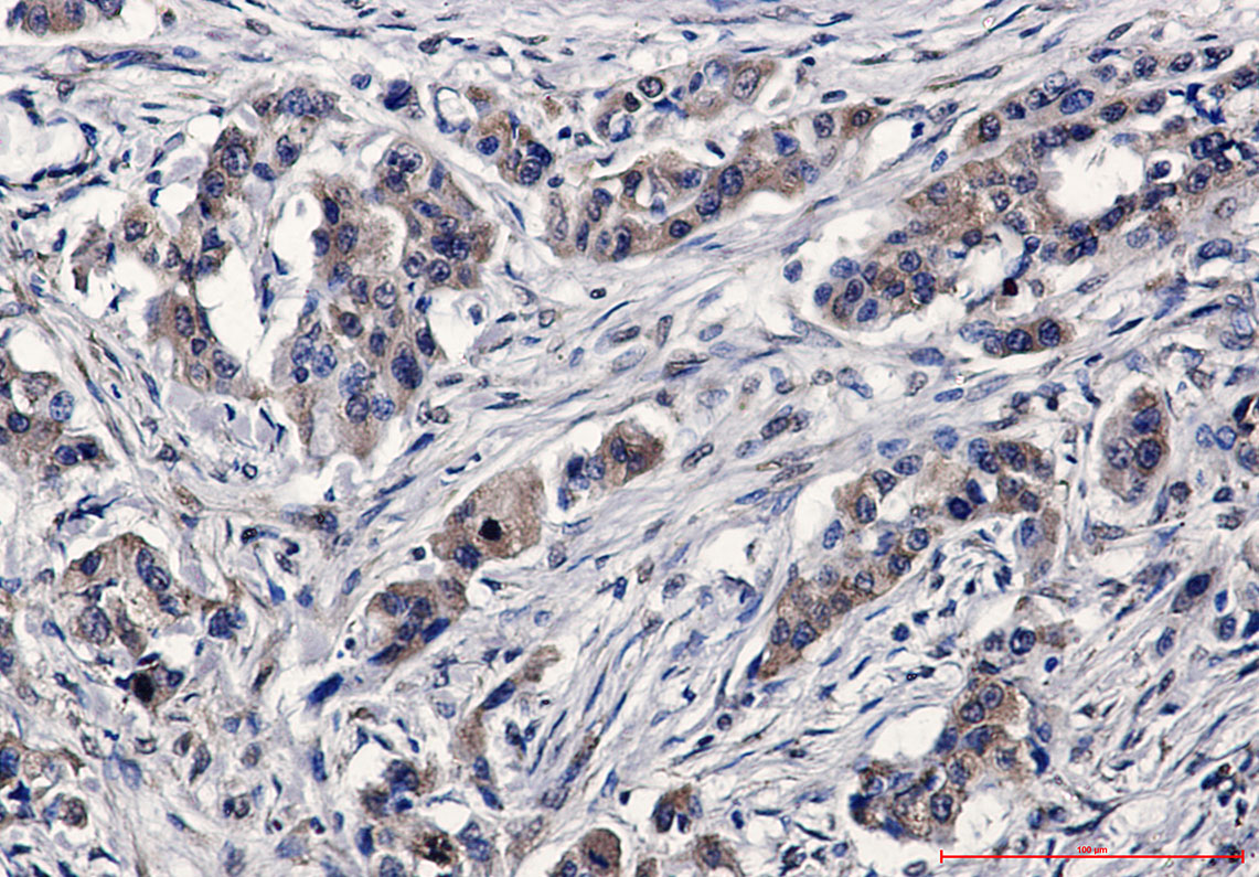 Immunohistochemistry analysis of paraffin-embedded Human lung cancer using C7 antibody. High-pressure and temperature Sodium Citrate pH 6.0 was used for antigen retrieval. |