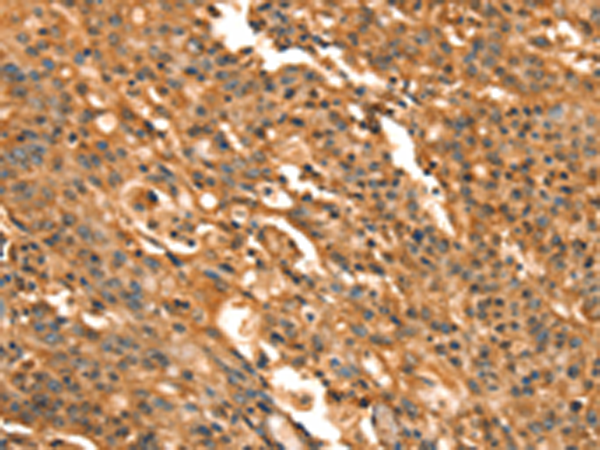 The image is immunohistochemistry of paraffin-embedded Human gastric cancer tissue using P11615(CACNA1E Antibody) at dilution 1/15. (Original magnification: ×200) |