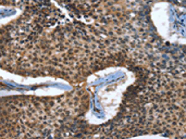 The image is immunohistochemistry of paraffin-embedded Human lung cancer tissue using P11617(CACNB2 Antibody) at dilution 1/30. (Original magnification: ×200) |