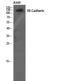 Western blot analysis of Cadherin 5 in A549 lysates using Cadherin 5 antibody. |
