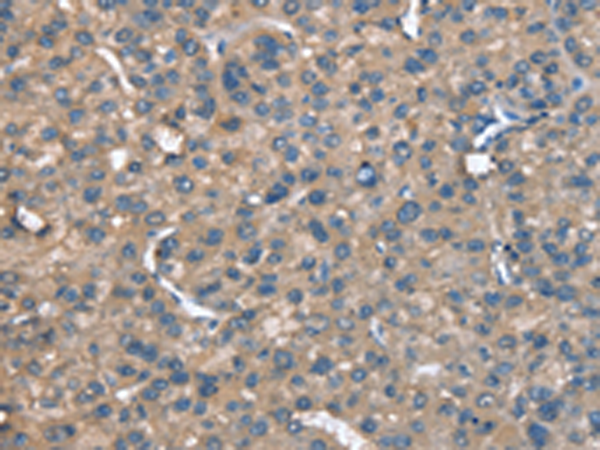 The image is immunohistochemistry of paraffin-embedded Human liver cancer tissue using P11618(CAGE1 Antibody) at dilution 1/20. (Original magnification: ×200) |