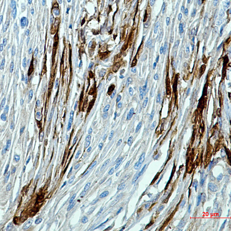 Immunohistochemistry analysis of paraffin-embedded Human brain using Calbindin antibody.High-pressure and temperature Sodium Citrate pH 6.0 was used for antigen retrieval. |