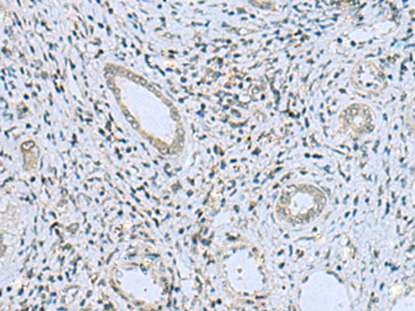 The image is immunohistochemistry of paraffin-embedded Human liver cancer tissue using P06130(CAMK2G Antibody) at dilution 1/20. (Original magnification: ×200) |
