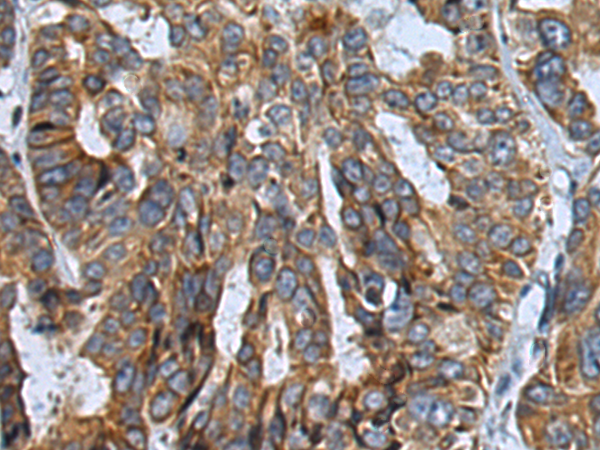 The image is immunohistochemistry of paraffin-embedded Human cervical cancer tissue using P05841(CANX Antibody) at dilution 1/40. (Original magnification: ×200) |