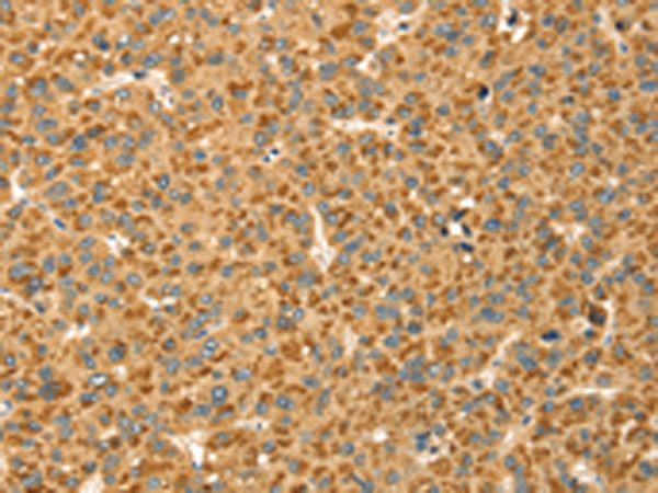 The image is immunohistochemistry of paraffin-embedded Human liver cancer tissue using P07145(CAPN7 Antibody) at dilution 1/20. (Original magnification: ×200) |