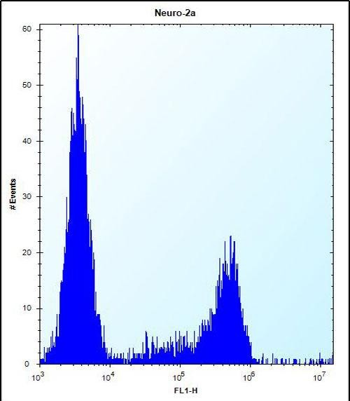 CASC4 Antibody (C-term) (Cat. #P30799) flow cytometric analysis of Neuro-2a cells (right histogram) compared to a negative control cell (left histogram).FITC-conjugated donkey-anti-rabbit secondary antibodies were used for the analysis. |