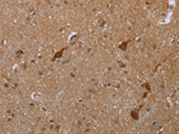 The image is immunohistochemistry of paraffin-embedded Human brain tissue using P04880(CASP8AP2 Antibody) at dilution 1/20. (Original magnification: ×200) |