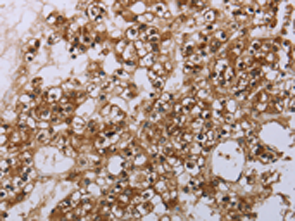 The image is immunohistochemistry of paraffin-embedded Human prostate cancer tissue using P04880(CASP8AP2 Antibody) at dilution 1/20. (Original magnification: ×200) |
