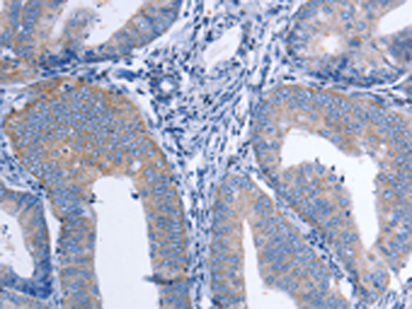 The image is immunohistochemistry of paraffin-embedded Human cervical cancer tissue using P03803(CCL26 Antibody) at dilution 1/20. (Original magnification: ×200) |