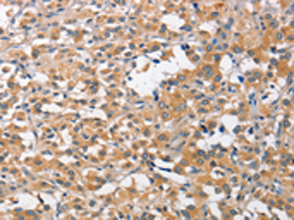 The image is immunohistochemistry of paraffin-embedded Human liver cancer tissue using P07174(CCL4 Antibody) at dilution 1/40. (Original magnification: ×200) |