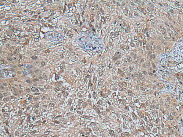 The image is immunohistochemistry of paraffin-embedded Human lung cancer tissue using P12555(CCNH Antibody) at dilution 1/20. (Original magnification: ×200) |
