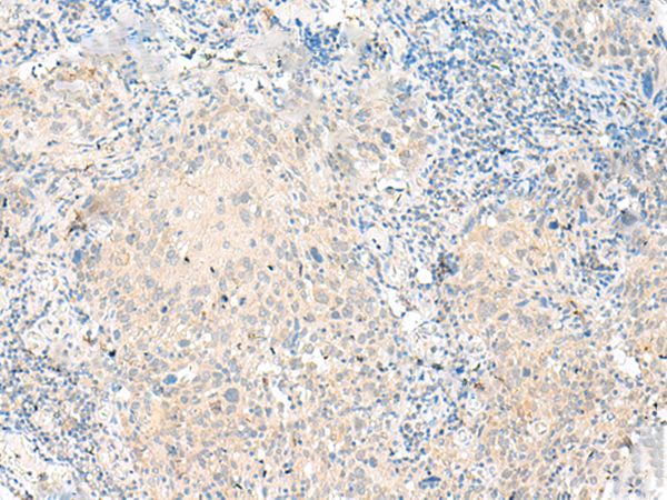 The image is immunohistochemistry of paraffin-embedded Human cervical cancer tissue using P04745(CCR6 Antibody) at dilution 1/30. (Original magnification: ×200) |