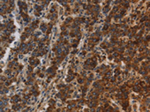 The image is immunohistochemistry of paraffin-embedded Human liver cancer tissue using P03804(CCR8 Antibody) at dilution 1/20. (Original magnification: ×200) |