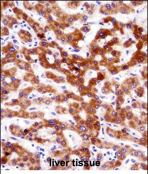 CCT4 Antibody (N-term) (P31554)immunohistochemistry analysis in formalin fixed and paraffin embedded human liver tissue followed by peroxidase conjugation of the secondary antibody and DAB staining.This data demonstrates the use of CCT4 Antibody (N-term) for immunohistochemistry. Clinical relevance has not been evaluated. |