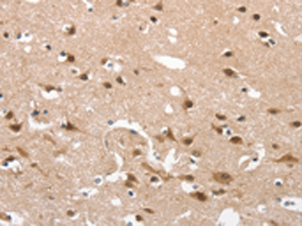 The image is immunohistochemistry of paraffin-embedded Human brain tissue using P04339(CD163 Antibody) at dilution 1/30. (Original magnification: ×200) |