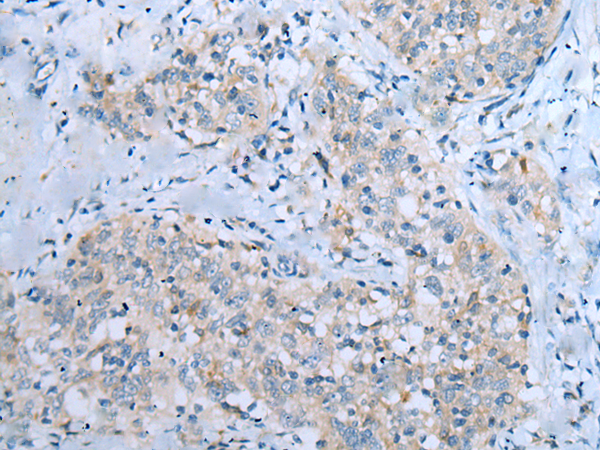 The image is immunohistochemistry of paraffin-embedded Human esophagus cancer tissue using P12559(CD209 Antibody) at dilution 1/20. (Original magnification: ×200) |