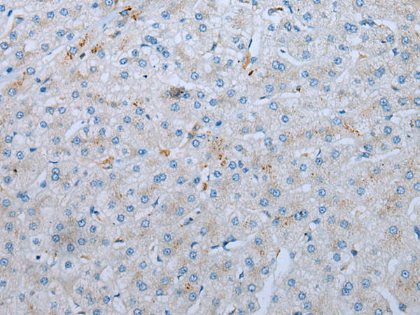 The image is immunohistochemistry of paraffin-embedded Human liver cancer tissue using P12559(CD209 Antibody) at dilution 1/20. (Original magnification: ×200) |