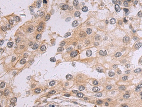 The image is immunohistochemistry of paraffin-embedded Human cervical cancer tissue using P04746(CD24 Antibody) at dilution 1/50. (Original magnification: ×200) |