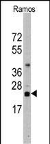 Western blot analysis of anti-CD3Z Antibody (N-term) (RB13817) in Ramos cell line lysates (35ug/lane). CD3Z(arrow) was detected using the purified Pab. |