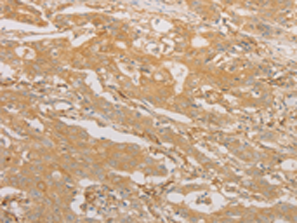 The image is immunohistochemistry of paraffin-embedded Human liver cancer tissue using P11641(CD40 Antibody) at dilution 1/70. (Original magnification: ×200) |