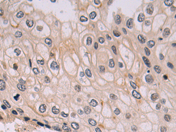 The image is immunohistochemistry of paraffin-embedded Human cervical cancer tissue using P06890(CD52 Antibody) at dilution 1/50. (Original magnification: ×200) |