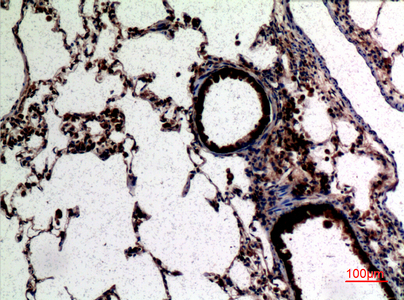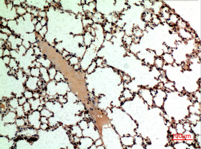 Immunohistochemistry analysis of paraffin-embedded mouse lung using CD62L antibody.High-pressure and temperature Sodium Citrate pH 6.0 was used for antigen retrieval. |