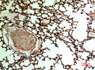 Immunohistochemistry analysis of paraffin-embedded rat lung using CD62L antibody.High-pressure and temperature Sodium Citrate pH 6.0 was used for antigen retrieval. |