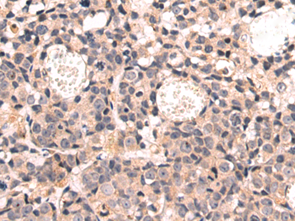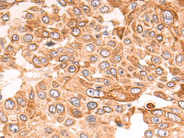 The image is immunohistochemistry of paraffin-embedded Human esophagus cancer tissue using P04346(CD63 Antibody) at dilution 1/50. (Original magnification: ×200) |
