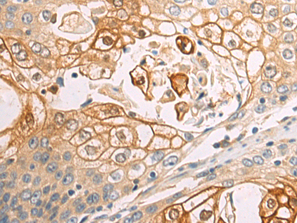 The image is immunohistochemistry of paraffin-embedded Human esophagus cancer tissue using P12403(CD70 Antibody) at dilution 1/60. (Original magnification: ×200) |
