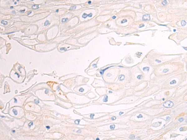 The image is immunohistochemistry of paraffin-embedded Human esophagus cancer tissue using P05527(CD70 Antibody) at dilution 1/50. (Original magnification: ×200) |