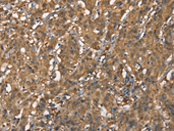 The image is immunohistochemistry of paraffin-embedded Human gastric cancer tissue using P04350(CDC25A Antibody) at dilution 1/60. (Original magnification: ×200) |