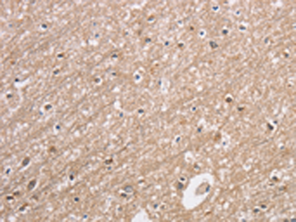 The image is immunohistochemistry of paraffin-embedded Human brain tissue using P04764(CDC34 Antibody) at dilution 1/40. (Original magnification: ×200) |