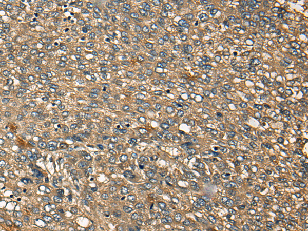 The image is immunohistochemistry of paraffin-embedded Human liver cancer tissue using P13048(CDC42BPA Antibody) at dilution 1/45. (Original magnification: ×200) |