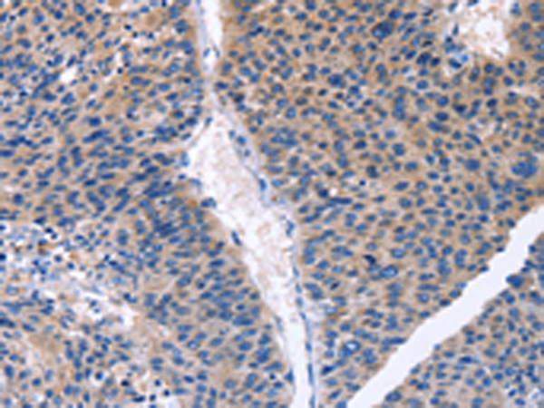 The image is immunohistochemistry of paraffin-embedded Human liver cancer tissue using P07180(CDK2 Antibody) at dilution 1/30. (Original magnification: ×200) |