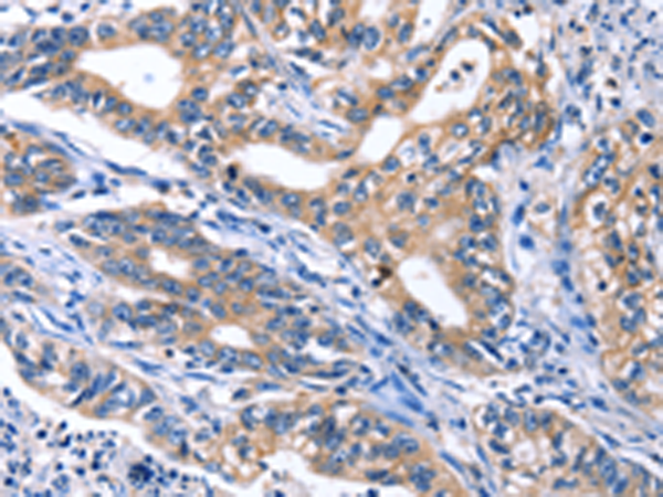 The image is immunohistochemistry of paraffin-embedded Human gastric cancer tissue using P07180(CDK2 Antibody) at dilution 1/30. (Original magnification: ×200) |