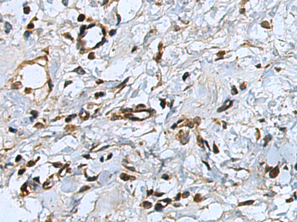 The image is immunohistochemistry of paraffin-embedded Human esophagus cancer tissue using P03810(CEBPD Antibody) at dilution 1/25. (Original magnification: ×200) |