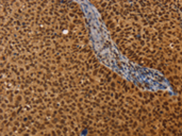 The image is immunohistochemistry of paraffin-embedded Human cervical cancer tissue using P04718(CEL Antibody) at dilution 1/40. (Original magnification: ×200) |