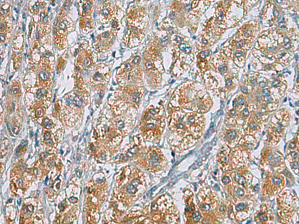 The image is immunohistochemistry of paraffin-embedded Human liver cancer tissue using P04772(CENPE Antibody) at dilution 1/20. (Original magnification: ×200) |