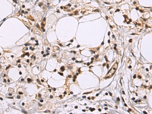 The image is immunohistochemistry of paraffin-embedded Human gastric cancer tissue using P05190(CENPV Antibody) at dilution 1/50. (Original magnification: ×200) |