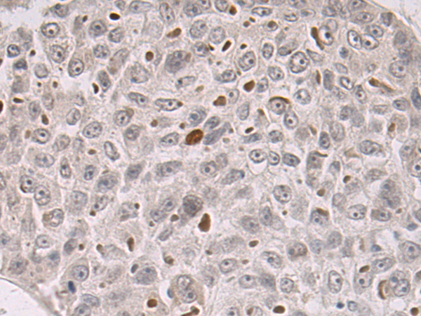 The image is immunohistochemistry of paraffin-embedded Human liver cancer tissue using P05190(CENPV Antibody) at dilution 1/50. (Original magnification: ×200) |