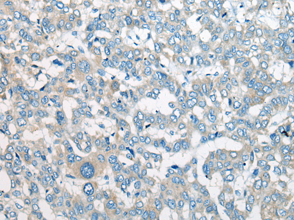 The image is immunohistochemistry of paraffin-embedded Human liver cancer tissue using P13067(CEP170 Antibody) at dilution 1/25. (Original magnification: ×200) |