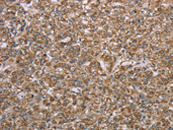 Gel: 8%SDS-PAGE, Lysate: 40 μg, Lane 1-5: Human fetal liver tissue, HT29 cells, HUVEC cells, MCF7 cells, human hepatocellular carcinoma tissue, Primary antibody: P05012(CERS4 Antibody) at dilution 1/300, Secondary antibody: Goat anti rabbit IgG at 1/8000 dilution, Exposure time: 10 seconds |