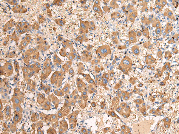 The image is immunohistochemistry of paraffin-embedded Human liver cancer tissue using P03563(CES1 Antibody) at dilution 1/130. (Original magnification: ×200) |