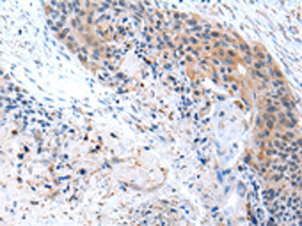 The image is immunohistochemistry of paraffin-embedded Human esophagus cancer tissue using P05614(CFC1 Antibody) at dilution 1/20. (Original magnification: ×200) |
