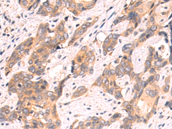 The image is immunohistochemistry of paraffin-embedded Human cervical cancer tissue using P03812(CFTR Antibody) at dilution 1/50. (Original magnification: ×200) |