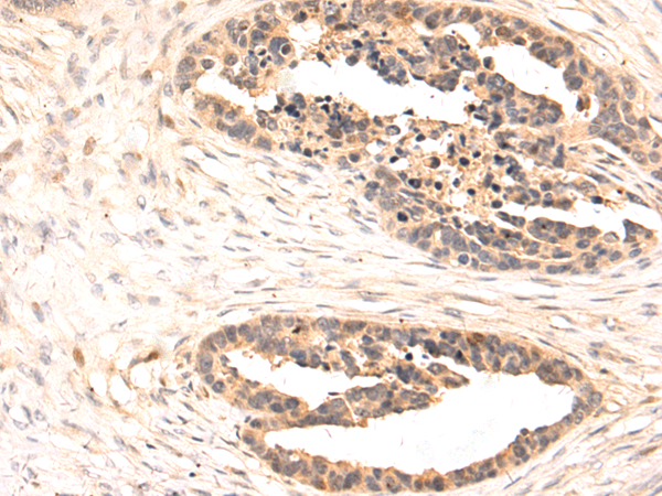 The image is immunohistochemistry of paraffin-embedded Human colorectal cancer tissue using P05488(CHD3 Antibody) at dilution 1/50. (Original magnification: ×200) |