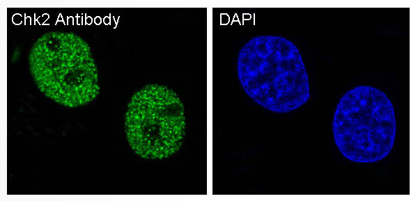 Immunofluorescence analysis of Chk2 in Hela using Chk2 antibody. |